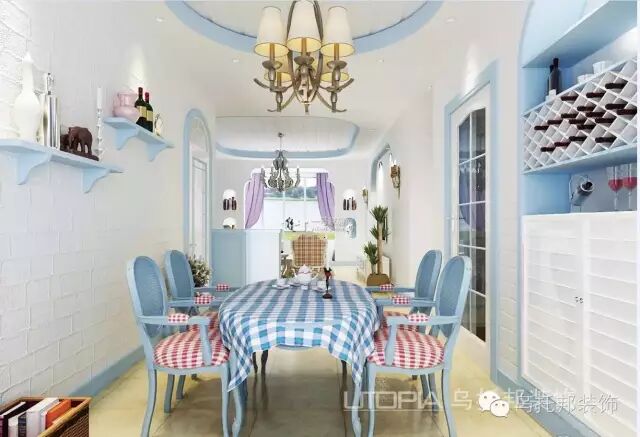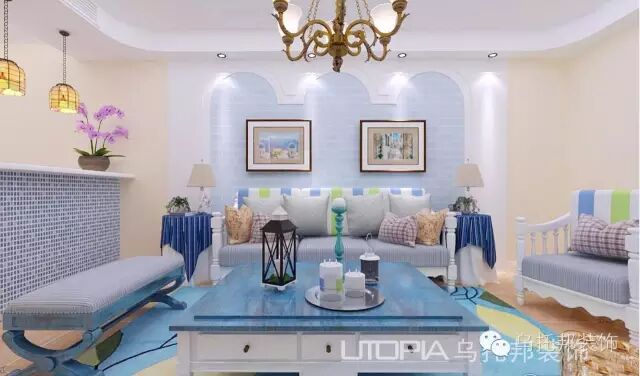 2、将海洋元素应用到家居设计中,给人自然浪漫的感觉。在造型上,广泛运用拱门与半拱门,给人延伸般的透视感。