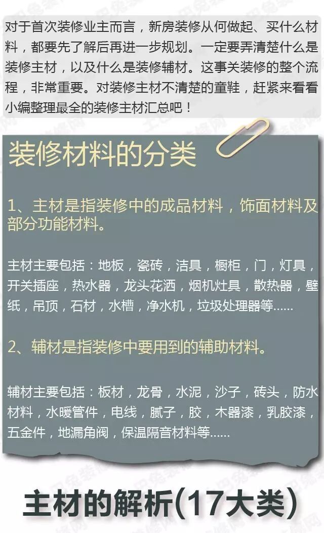 最全装修主材清单汇总,必须知道!