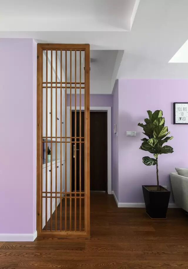 入门的玄关格栅,使得进门的视线被稍稍拦隔。