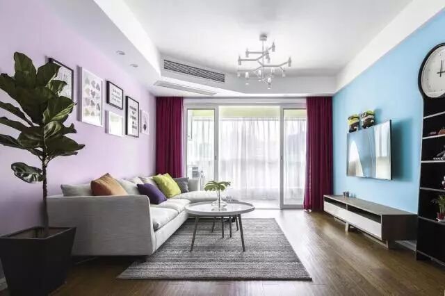 日期:2017-08-10 15:16:37浅松石蓝和丁香紫的碰撞,让北欧的朴素带出了一丝娇媚,不是白墙一样可以很清爽。
