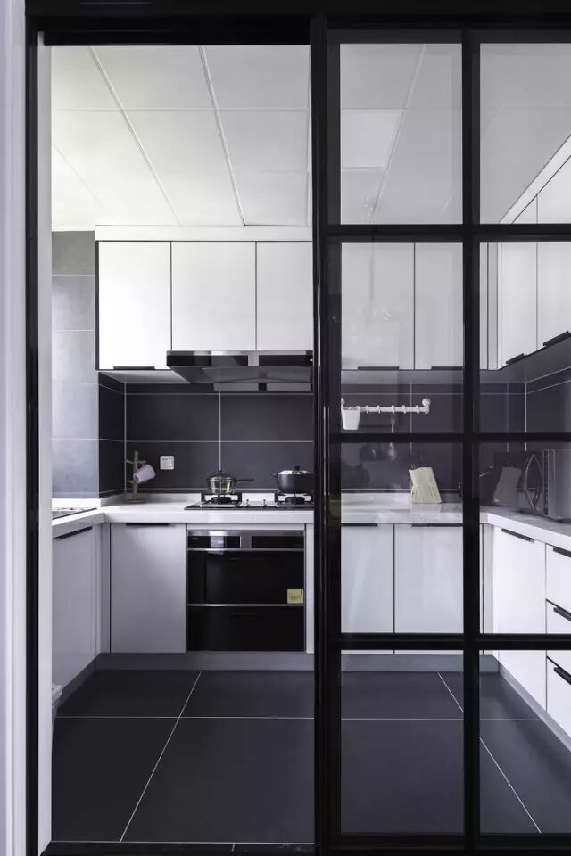 黑白极简的厨房,理性干净,体现了男主人的刚毅和果断。