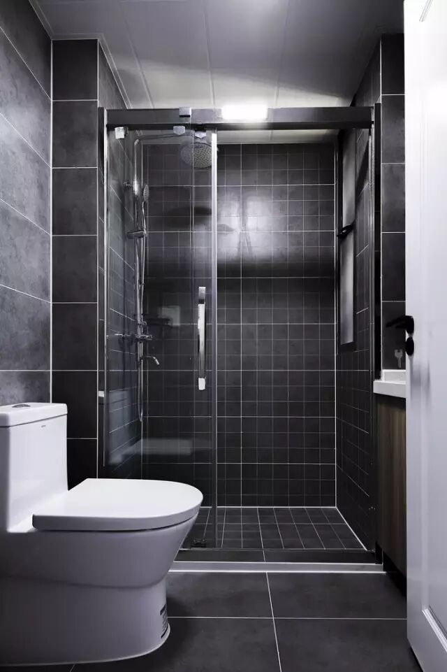纯黑的卫生间透露着现代极简的感觉,和其他空间呈现剧烈的“反差萌”。