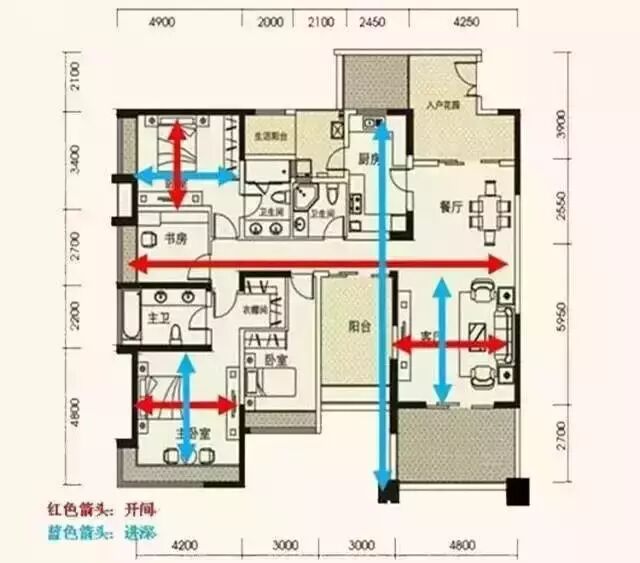 我们把房间的主采光面称为开间(有些地方称作面宽),与其垂直的称为进深。