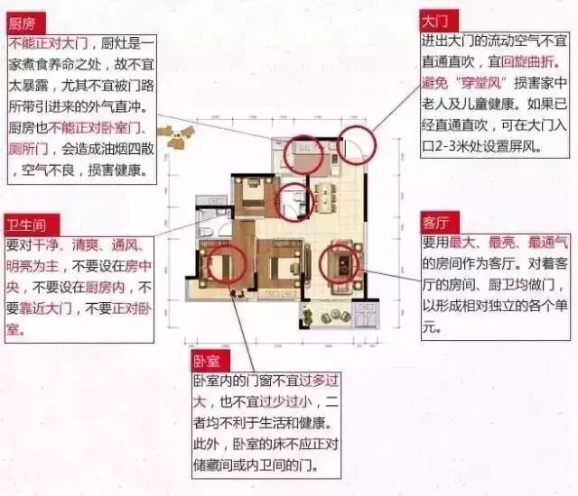 动线一般是客厅和厨房要和卧室休息区合理分开,各在不同的两边,这样不会打扰到休息。厕所和厨房一般较潮湿,所以和卧室最好也要分开。