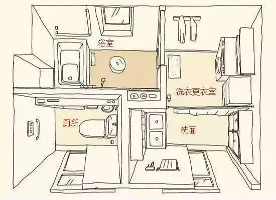 干湿分区就是指厨房、卫生间这两个湿气较重且较容易产生脏污的房间应与精心装修的怕水怕脏的卧室客厅等尽量分离。