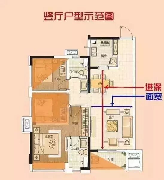 下面要说的就是横厅和竖厅,又一脸懵逼?很多人对于这两个厅傻傻分不清,其实它们的不同就在于进深和开间的相对大小。