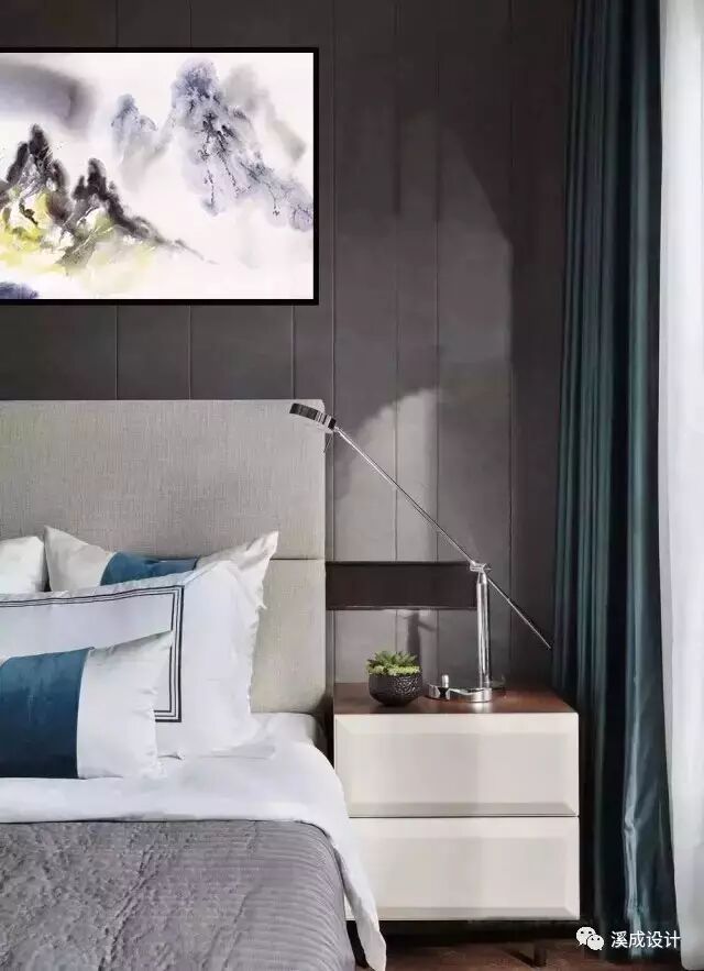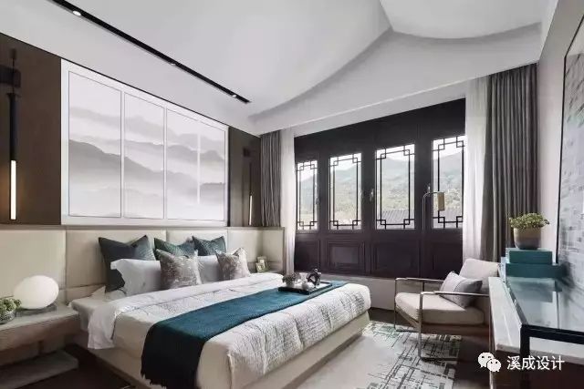 此外,新中式设计也非常讲究空间的简洁实用性,这既源自中国画的留白艺术和中国传统文化的淡泊物质,追求内心丰富,也与现代人生活环境的变化。人们越多地希望在纷繁的社会活动之余单纯的回归简洁的生活,给居者自己更多的空间及精力去遐想和发挥。