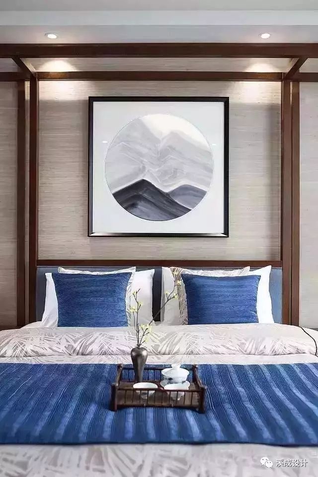 新中式与生俱来的悠然自若,如同那浩瀚的星空,有着说不尽的未知和神奇;又如同一位面带浅笑的生活智者,浮华远去,平心而坐,禅茶初上。远山眺,诗意浓。