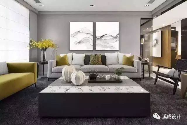 (3) 色彩:摆脱了以往的传统基色,转而使用黑白灰为主的色调,凸显出一种静且慢的生活状态。同时搭配一些鲜艳的颜色,如靛蓝、天青、苍绿、胭脂、樱草、赤金等中国传统颜色,更衬脱出居室的时尚和雅致。