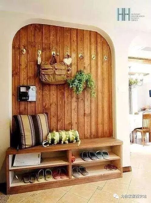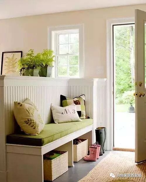 借用客厅1平方,小小矮墙很田园,上边是卡座,下边是鞋盒,出入换鞋好方便