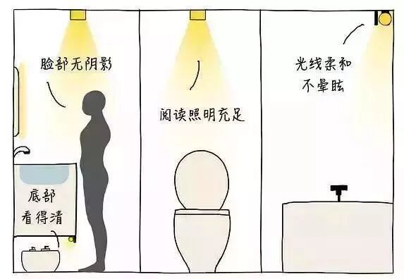 ● 马桶上方:如果有如厕时阅读的习惯,建议额外在马桶上方设计一个小阅读灯。