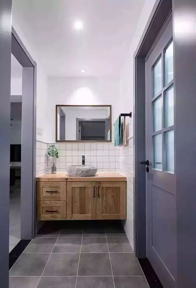 把洗手台外移就是在马桶和洗手台之间加上一堵墙和一扇门,把湿区和干区给分开,马桶和淋浴区之间也还可以再次干湿分离。