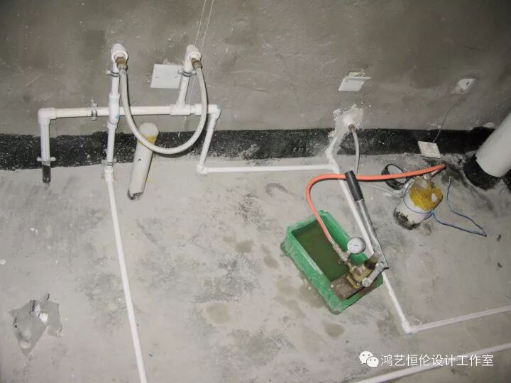 11、水路改造后应该有两次打压测试,打压测试最好有物业在场,能起到监督作用;因为有的装修队会在此环节欺骗业主。方法是:打压的时候,打开打压泵的“回水阀”形成回路,打压泵看起来虽然在工作,不过管内并没有多少压力,特别对于电动打压泵,业主更应该注意。