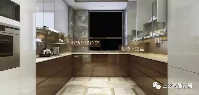 这里的上柜都配置了电动升降拉篮,可以轻松够到高处的东西