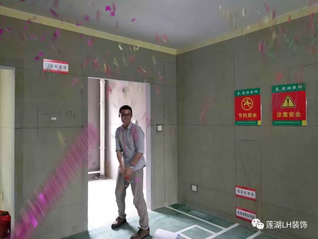 开工,撒花~~ 小小的庆祝仪式让现场更热闹喜庆,同时也宣告装修之旅的开始,小姚一定努力给你带来一个美好的装修体验。