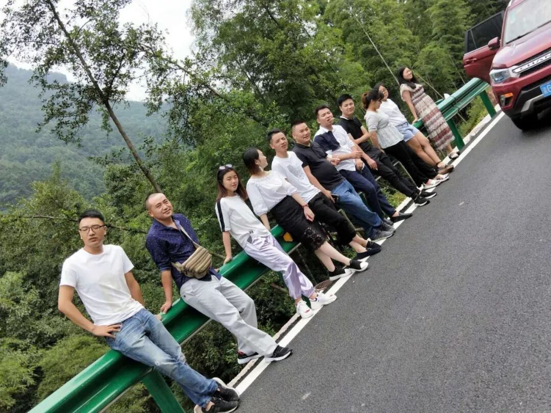 2018年7月9日上午9:00整所有员工在公司集合,统一出发,经过三个小时的车程,山茶花装饰全体人员安全抵达目的地——四面山景区。