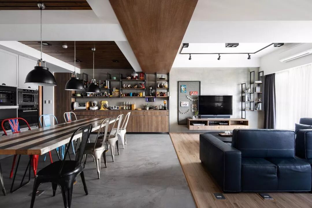 工业风是一个很随性的风格,为什么这么说呢?它们的共同特征就是金属集合物,焊接点、铆钉也暴露在外,随着工业风慢慢发展,也融合了其他更多装饰性的曲线。