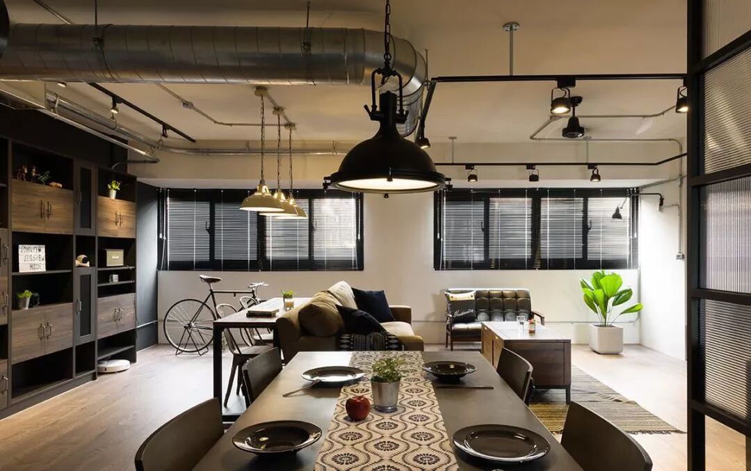 比如黑灰为主色的搭配、金属件作为家居的载体、管线外露等等......