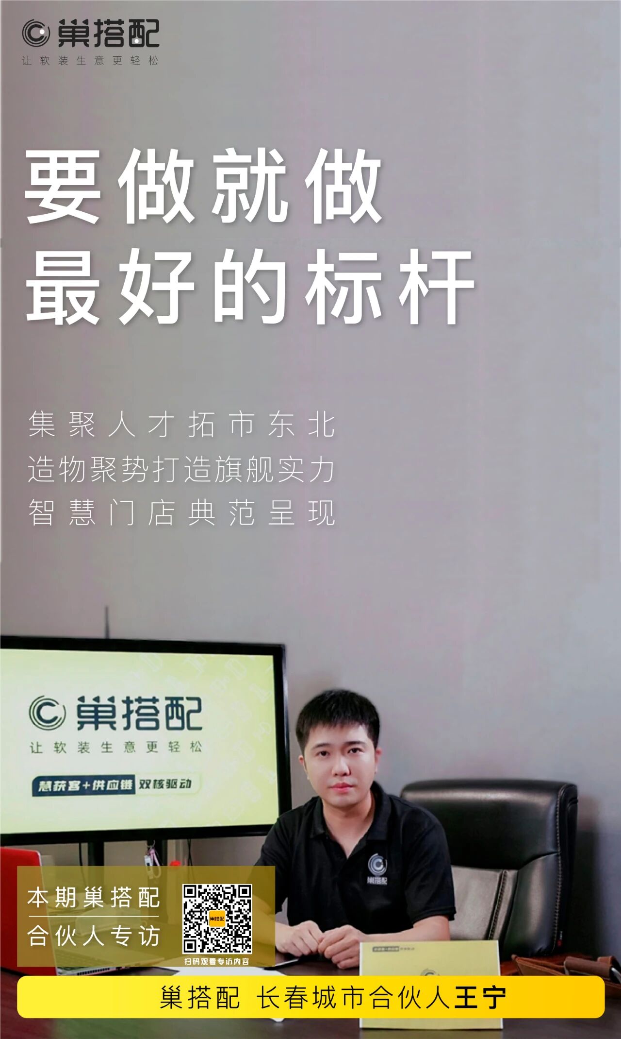 这是巢搭配长春合伙人王宁选择加入巢搭配的重要契机,已在传统家居行业有所建树的王总选择在重要节点重新出发,一是看重互联网对于传统行业的巨大推动作用,二是对巢搭配专业的信任,伟大的企业家总是将眼界拓展的更远,当人们只顾着眼前的既得利益时,他们已然察觉未来趋势的到来,王总要做的,就是做传统行业的先行者!