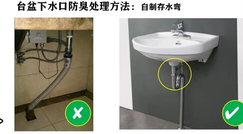 如果开发商在台盆下水口制作下水管的时候没有存水弯,那么我们在安装台盆的时候可以自制存水弯,就隔绝了下水管内外的空气连通,下水管内的异味就不会传播到房间空气当中。
