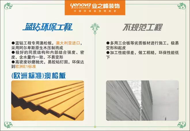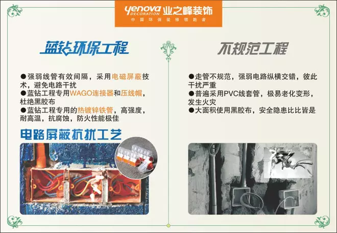 蓝钻环保工程,由闻名世界的“蓝钻工程”和”环保三重防护体系“组成,二者共同构筑了严谨规范的施工和环保系统,同时也奠定了业之峰在施工领域和环保领域的领导者地位,使业之峰成为了名副其实的”中国环保家装领跑者“ 以下图片:蓝钻工程的标准工艺展示图