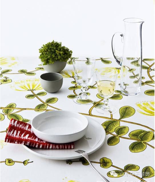 绿色是大自然的颜色,用枝叶图案桌布铺设餐桌,铺就了一桌的自然气息,也会让就餐时光变得更加惬意舒适。