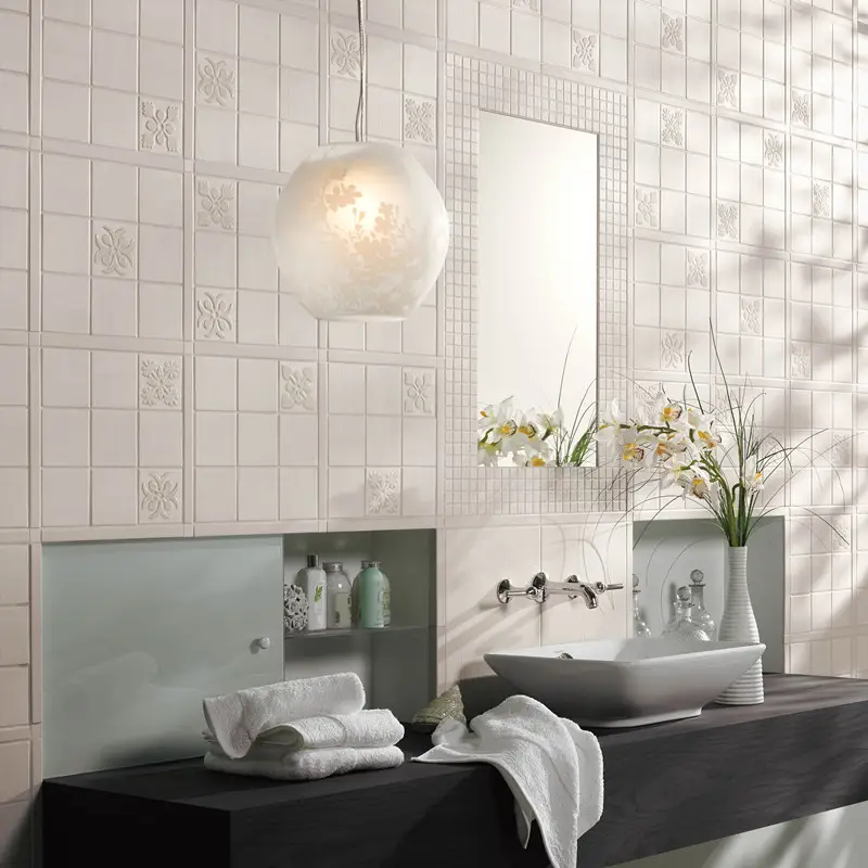 最基本的布置方法:是从卫浴间门口开始,由低到高逐渐深入。