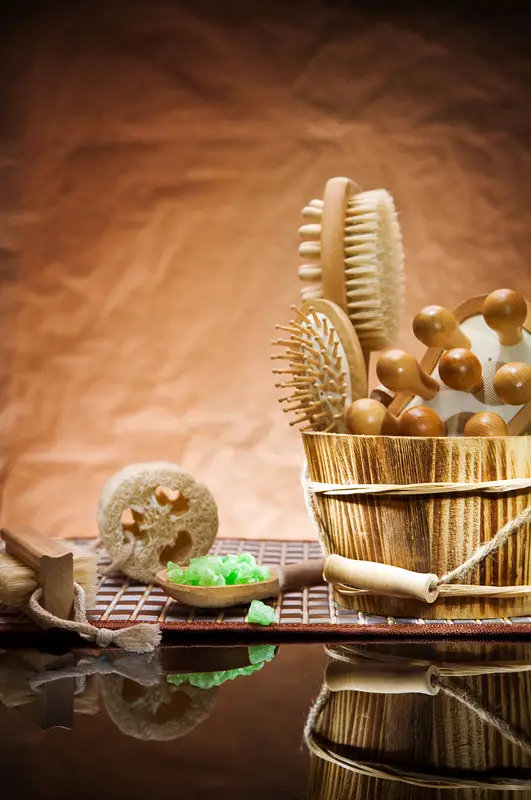 沐浴篮最适合收纳SPA用品,小小的篮子可一次性收纳海绵、沐浴球、按摩器等多件产品。这种集中收纳,便于携带的形式,也是一个乱中有序的好办法。