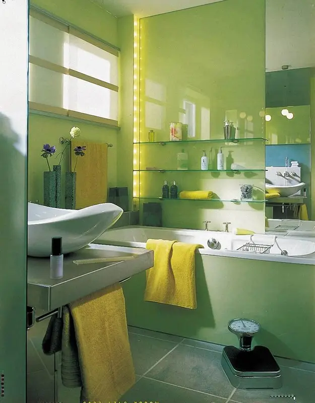 放过多的清洁卫生用品都会显得杂乱无章,而且容易碰倒,因此不妨在面盆上部贴墙的位置钉上搁板,只要能放得下化妆瓶、刷子、洗漱杯等就可以了。搁板高度以不妨碍使用水龙头为宜,材料可选用木板、玻璃等。