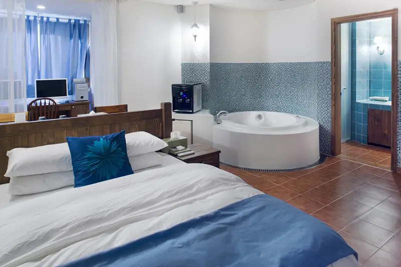 如果空间允许,当然干湿分离,按摩浴缸等等都能被安置到卫浴间中,但空间本身狭小,我们就可通过一些硬装的布局和软装的色彩搭配等将空间从视觉上摆脱拥挤感。