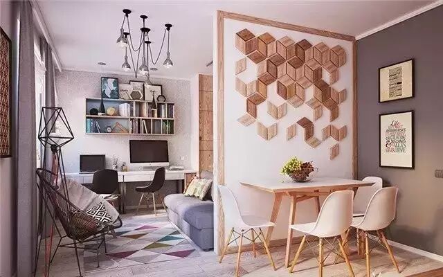 在家中放置一个吧台,能当餐桌有能将客厅和厨房的区域分开,小户型非常实用。