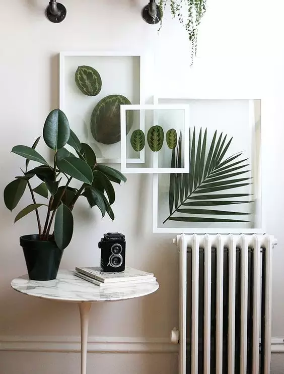 用植物当作房间中的装饰再好不过,不擅长养花的人可以将植物叶装进玻璃相框里,比买来的装饰画更好看。