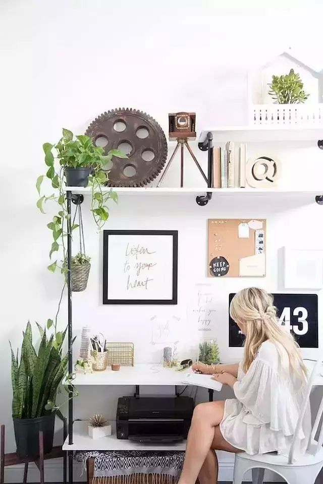 这样的置物架既能放东西又起到了装饰的作用还能当办工作,太适合小房间用了。