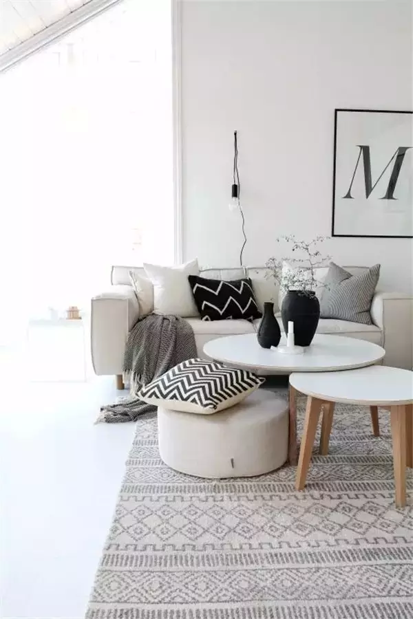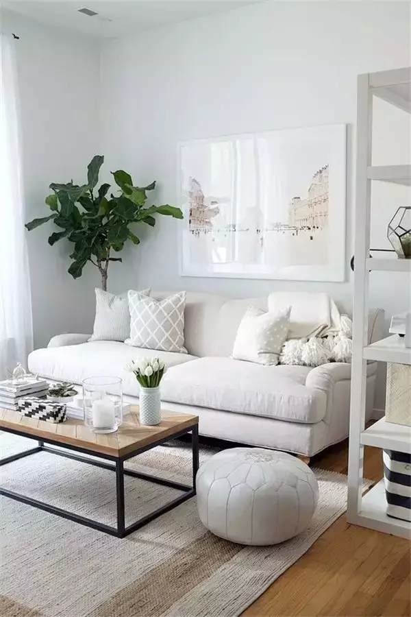 房间的织物或地毯选用小图案或纯色,一致的色彩在视觉上能让小房间看上去较大。