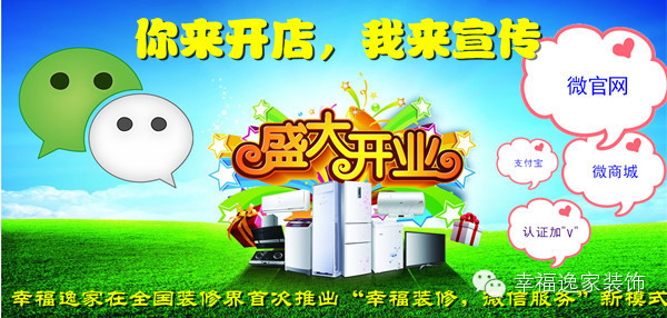 “开业在即,宣传先行” 为了更好地减少客户装修和开业压力,结合腾讯微信,幸福逸家在全国装修界首次推出“幸福装修,微信服务”新模式,免费为装修店主搭建微信公众号微商城服务。 凡是幸福逸家装修店主,均可报名参加,名额有限。 |