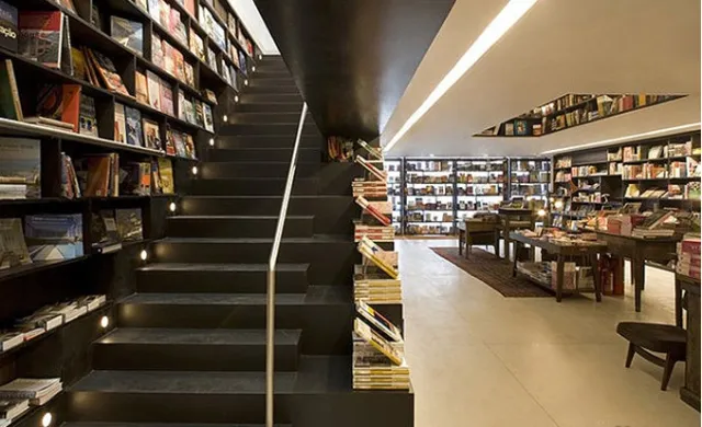 ►那层层叠叠的阶梯其实与我们规规矩矩放在书房里的书柜没什么不同,想象一下你每天上下楼的时候脚下便是无数大师智慧的结晶,这便迎合了一句话“书,是人类进步的阶梯”。