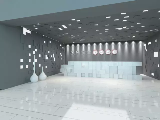 ►大厅及会议室的吊顶采用类似印章的造型加以美化,即符合现代气息又富含深意。