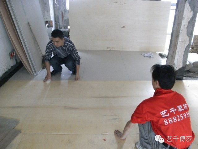 地砖铺好后经验收没有空鼓现象就要做好地面保护,以免后期施工会磨花砖面。地面保护要做双层,最底层用珠棉隔垫底,面层用中纤板或三厘夹板均可。