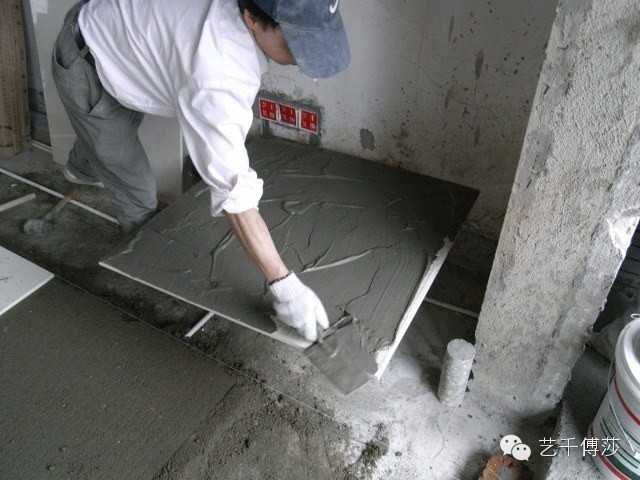 铺地砖要打平水这是众所周知的,这里的技术含量最重的还是如何调砂浆和铺砖的平整度问题,当然铺的平不平还是要看师傅的手艺和现场监理的正确指导。砂浆的调比是有讲究的:水泥、砂子、水,三者以用手抓紧能成为一团,丢到地下又可自然散开为合适,太湿太干都不行。完事后用纯水泥浆调浆铺贴,铺完后,最好要在第二天要试下是否有空鼓现象。另外开始铺砖时还要特别注意整个客厅的排砖方位,不要砖缝正对大门,如果你一开门就看到一条缝对着您,长久下去你会感到身体不适工作不顺的,这条缝在风水上叫“箭”或“冲”,是很有道理的。如果遇到半块砖或小半块砖应尽量排放在沙发的底下位置,这样就不会影响到整个客厅效果。