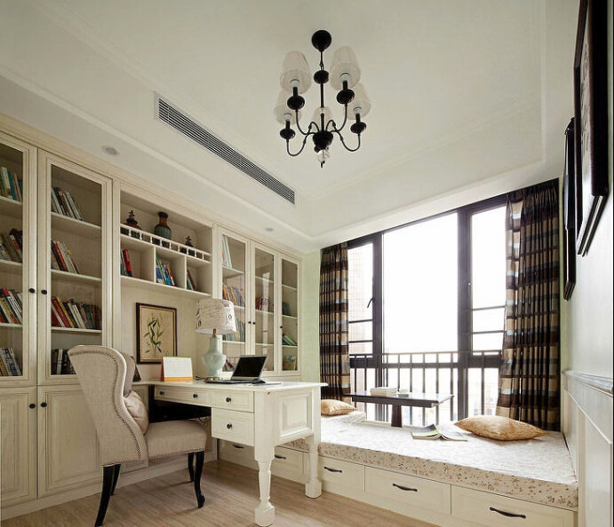 这间书房就是利用阳台打造的。阳台虽小又如何,照样做一整排的榻榻米,还能摆放一个转角书桌,强大!