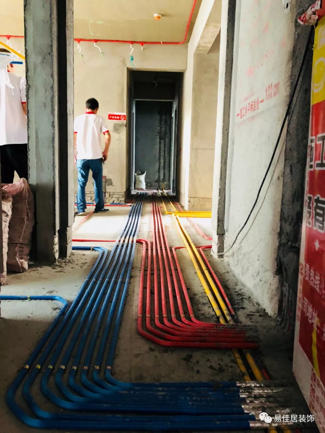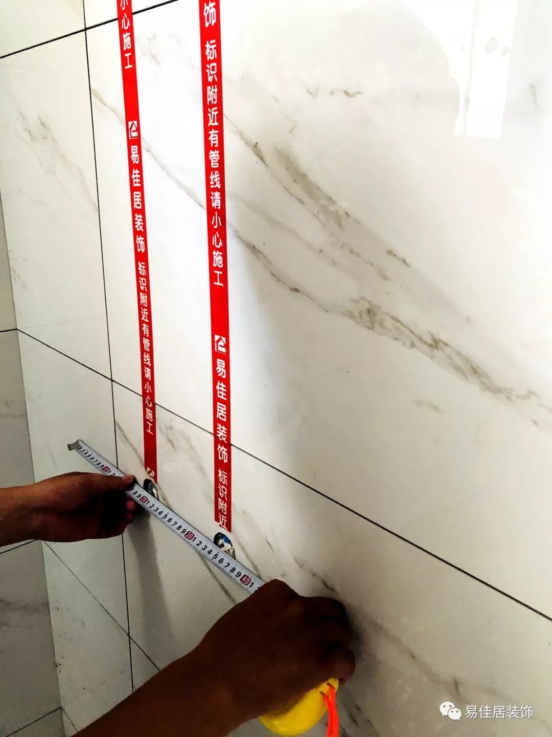 1、贴完瓷片后及时贴好水管走向标识、强电走向标识。