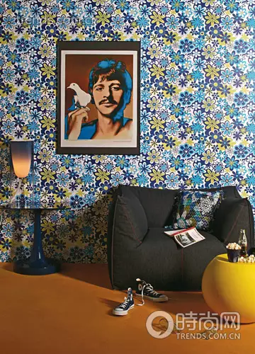 重复的冷色调几何图形或是花卉图案,可以营造出令人印象深刻的冷色波普感受