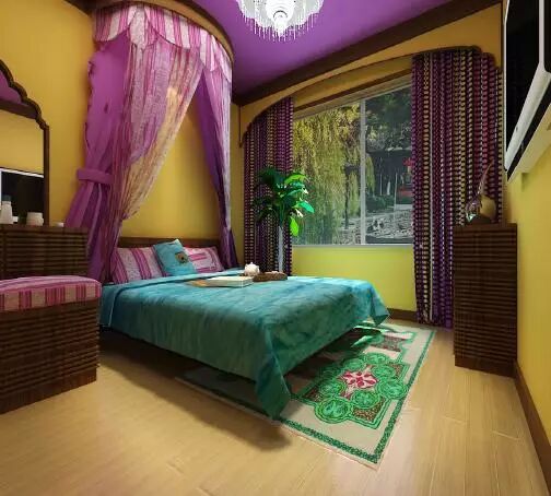 材质:东南亚风格讲求色彩艳丽,不能选择带有做旧工艺的地板,可以选择拼花或者双拼色地板进行搭配,但需要注意的是,所选地板颜色不能够过于杂乱,否则会使居室空间显得累赘。