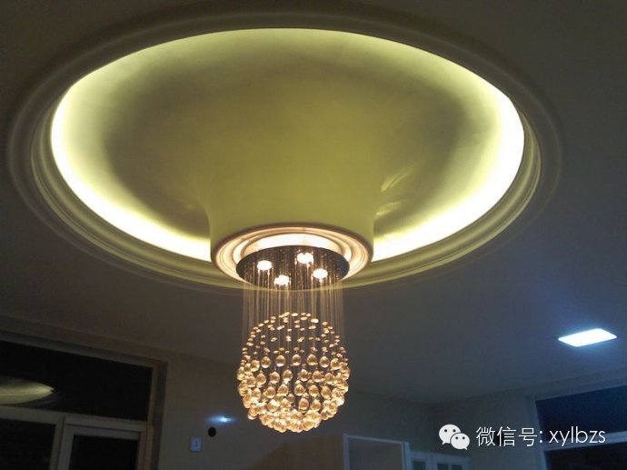 这个吊顶造型,看上去好象不要很多材料,但内行人就会发现,仅弧型部位就要几张大芯板来挖。再加上50厘米的深度。