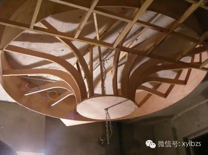 如果只看表面,下面的造型做成功之后就是一个白色的弧型天花而已。但看清了内部结构兴许你会舒服些。无论是用材还是所花的人工都是非常惊人的。