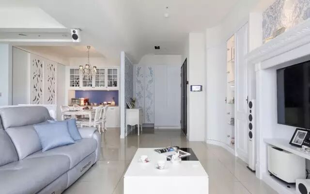 ▲ 以白色和湖蓝为主调,营造一种清爽的浪漫风