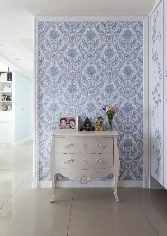 ▲ 进门玄关用的湖蓝色的壁纸,少了一份欧式的奢华,多了一份淡雅