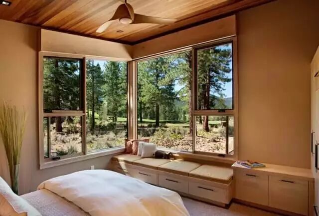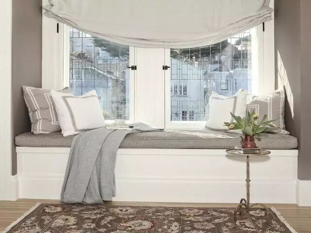 如果飘窗的空间较大,也可以打造成一个休息的场所。配上软垫、窗帘、绒毯,就可以睡午觉啦!