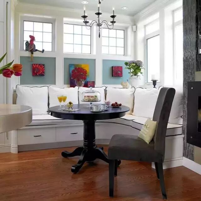 飘窗和沙发、茶几和座垫的搭配,一个会客区就出来了!