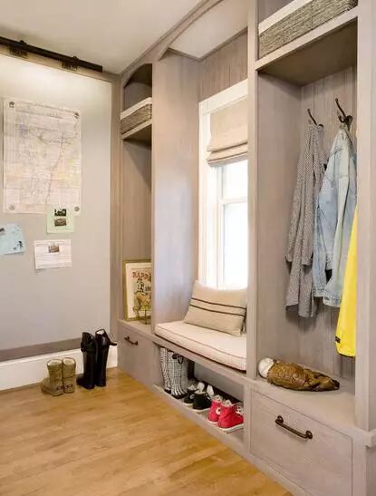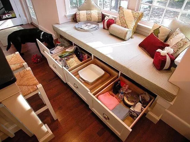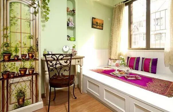 飘窗下做一些矮柜用于储存平时不常用的物品,既美观又实用,还不占地方。